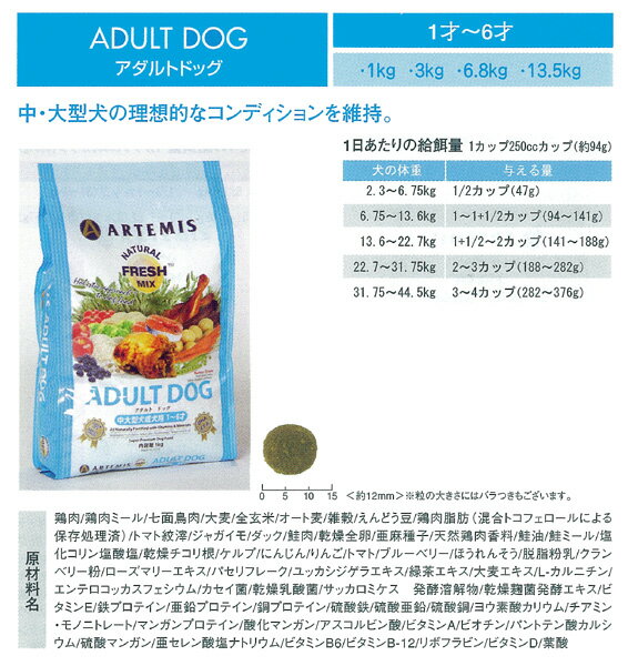 根強い人気!中大型犬1?6歳用ARTEMIS アダルトドッグ 1kg 価格: 1,710円 レビュー評価: 0.0 レビュー数:0 内容量1kg保存方法直射日光・高温多湿を避けて保存してください。原材料鶏肉、鶏肉ミール、七面鳥肉、大麦、全玄米、オート麦、雑穀、えんどう豆、鶏肉脂肪(混合トコフェロールによる保存処理済)、トマト絞滓、ジャガイモ、あひる、鮭肉、乾燥全卵、亜麻種子、天然鶏肉香料、鮭油、鮭ミール、塩化コリン塩酸塩、乾燥チコリ根、ケルプ、にんじん、りんご、トマト、ブルーベリー、ほうれんそう、脱脂粉乳、クランベリー粉、ローズマリーエキス、パセリフレーク、ユッカシジゲラエキス、緑茶エキス、大麦エキス、L-カルニチン、エンテロコッカスフェシウム、カセイ菌、乾燥乳酸菌、サッカロミケス 発酵溶解物、乾燥麹菌発酵エキス、ビタミン Supported by 楽天ウェブサービス |